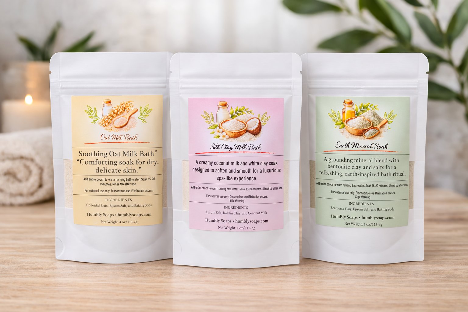 Transform your bath into a calming self-care ritual with our Ritual Soak Trio. This handcrafted collection features three gentle mineral bath blends designed to soothe, soften, and refresh the skin while creating a relaxing spa-like experience at home.