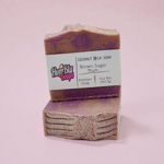 Ingredients: Coconut oil, Sunflower oil, Olive oil, Coconut Milk, Aqua, Sodium hydroxide, Ground Walnut, Mica powder, and fragrance.