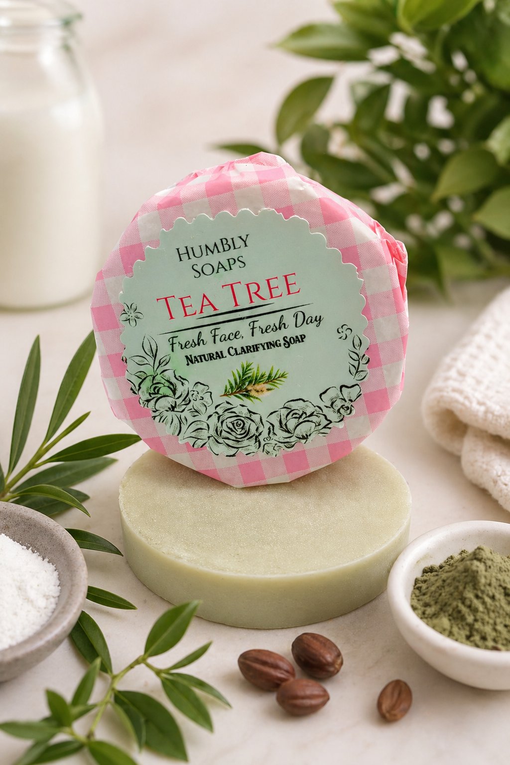 Refresh your skin with our handcrafted Tea Tree Facial Soap, thoughtfully formulated to bring balance, clarity, and a naturally radiant glow. Made with our signature coconut milk soap base, this gentle bar delivers a creamy, nourishing lather that cleanses without stripping your skin’s natural moisture.