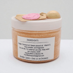 Ingredients: Fine Sugar, coconut oil, sweet almond oil, Vitamin E, Mica powder, and Fragrance.