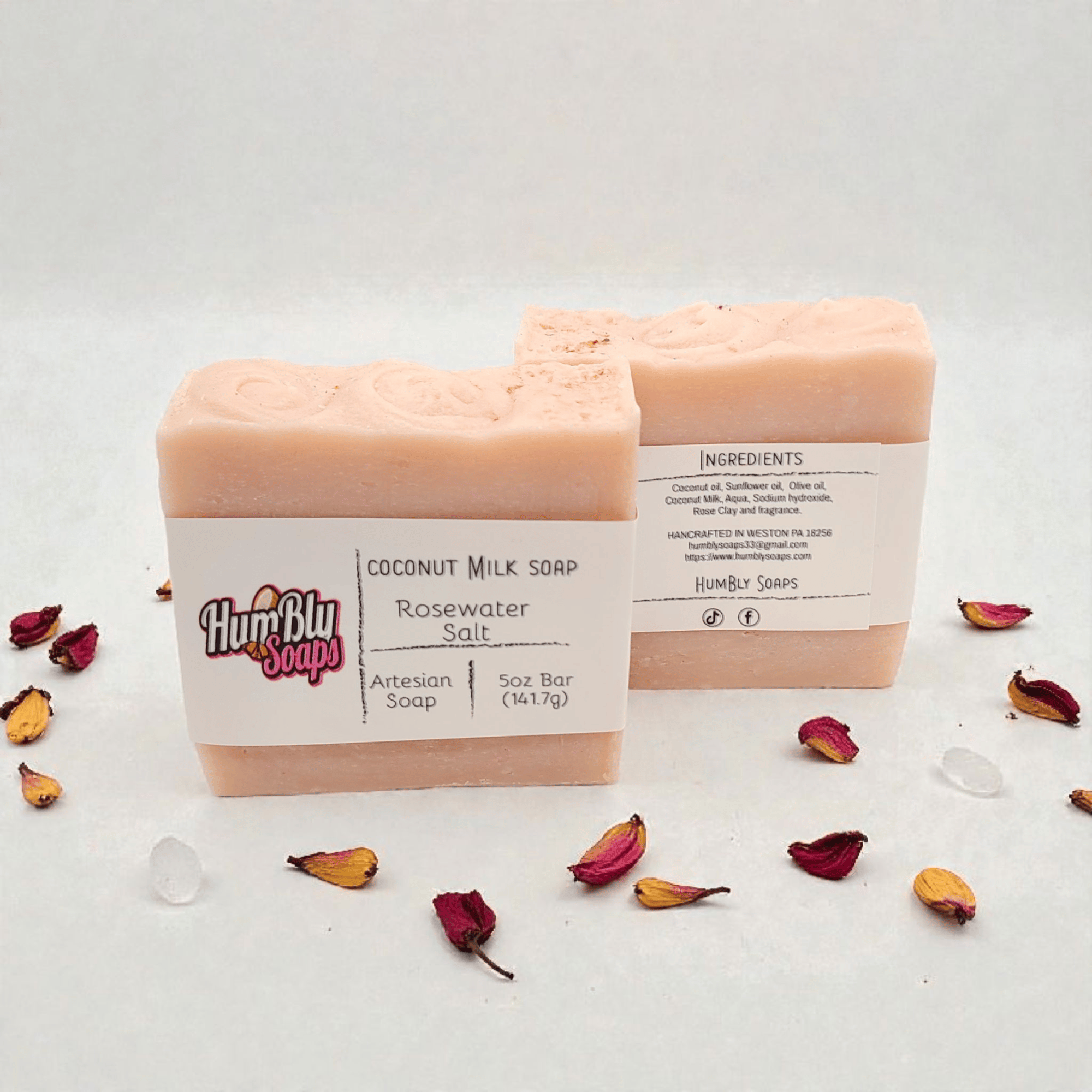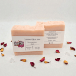 Ingredients: Coconut oil, Sunflower oil, Olive oil, Coconut Milk, Aqua, Sodium hydroxide, Rose Clay, and Fragrance.