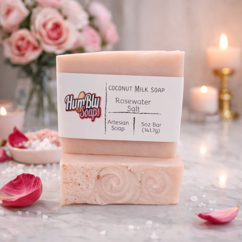 Face and body soap. Rosewater & Salt is a sophisticated and calming blend that distills the essence of a tranquil coastal garden in full bloom. The scent begins with the soft, floral refinement of fresh geranium, where delicate petals release their fragrance into the air, evoking the elegance and romance of rosewater and pink salt. This is beautifully counterbalanced by a subtle hint of sea salt, adding a crisp, refreshing note reminiscent of an ocean breeze, grounding the florals with an earthy, vanilla vibe. Rose clay is incorporated for gentle exfoliation, oil absorption, and detoxification, resulting in brighter and clearer skin. Suitable for most skin types, including sensitive, dry, and oily, it cleanses pores without stripping natural moisture and calms inflammation. The clay contains minerals that enhance circulation and promote a healthy radiance.
