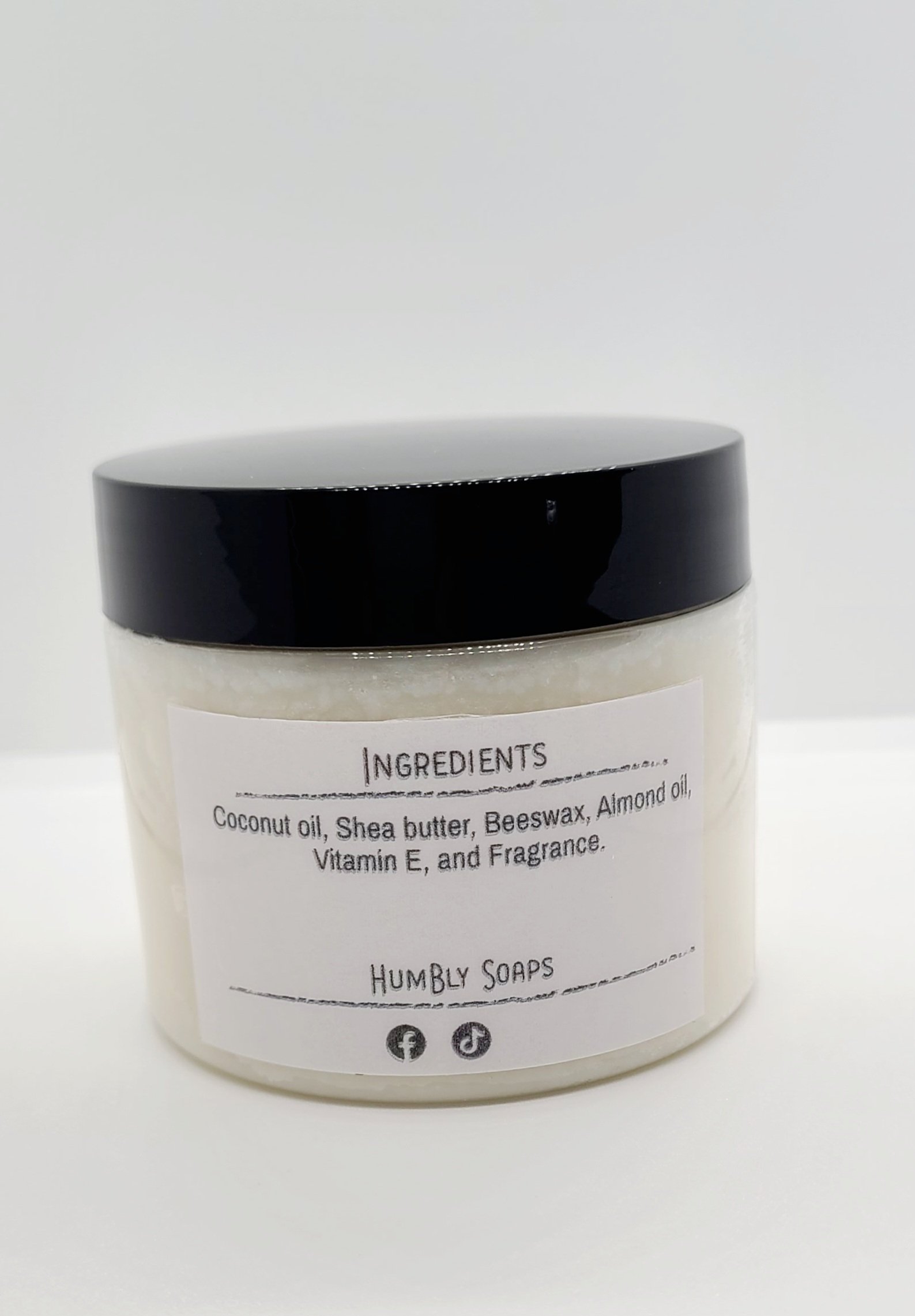 Ingredients: Coconut oil, Shea butter, Beeswax, Sweet almond oil, Vitamin E, and Fragrance